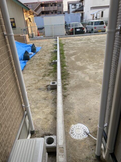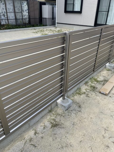 一部隣地と共同のためブロック上にフェンスを施工出来ないため境界の内側に独立基礎を使用しフェンスを取り付ける提案をさせていただきました。