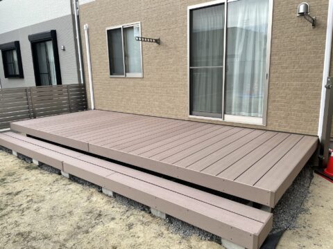2台用折板カーポート 目隠しフェンス 一部独立基礎 デッキ 束石据え付け施工 竿掛け 片開き門扉 電気工事