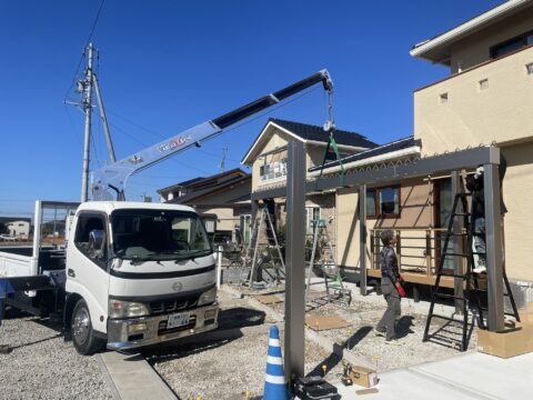 エクステリア施工業者はカーポートの梁上げ等でユニックが必要な際、リースやレッカー屋に委託するのがほとんどの為、自社で所有している施工業者は珍しいです。